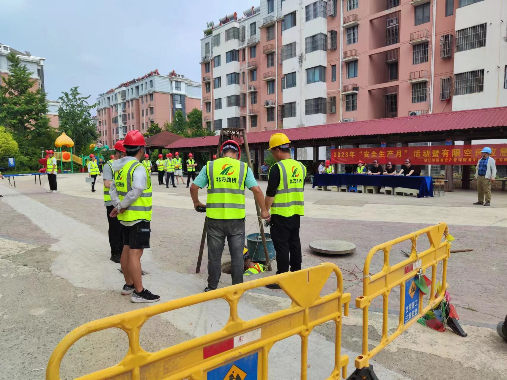 628日下午,北方路桥在清泓花园小广场举行了2023年“安全生产月”活动暨有限空间应急演练,清江