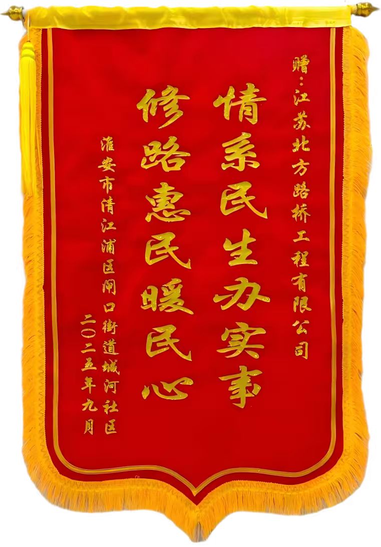当天下午,城河社区负责人一行走进北方路桥公司董事长办公室,双方在亲切融洽的氛围中进行了交流,北方路桥在了解到社区新办公楼门前道路亟待修整的情况后,积极响应、主动担当,充分发挥企业在道路建设方面的专业优势,以高效优质的施工为新办公楼铺设了平整畅通的道路,极大改善了办公环境。锦旗上熠熠生辉的十四个字,不仅代表了社区居民的共同心声,更是对我公司以实际行动践行社会责任、热心公益、服务民生的高度认可。公司董事长在接收锦旗时表示,服务社会、回馈地方是企业应尽的职责,北方路桥始终秉持“修路架桥、造福于民”的初心,今后将继续关注并支持社区建设,为百姓创造更多便利与福祉。